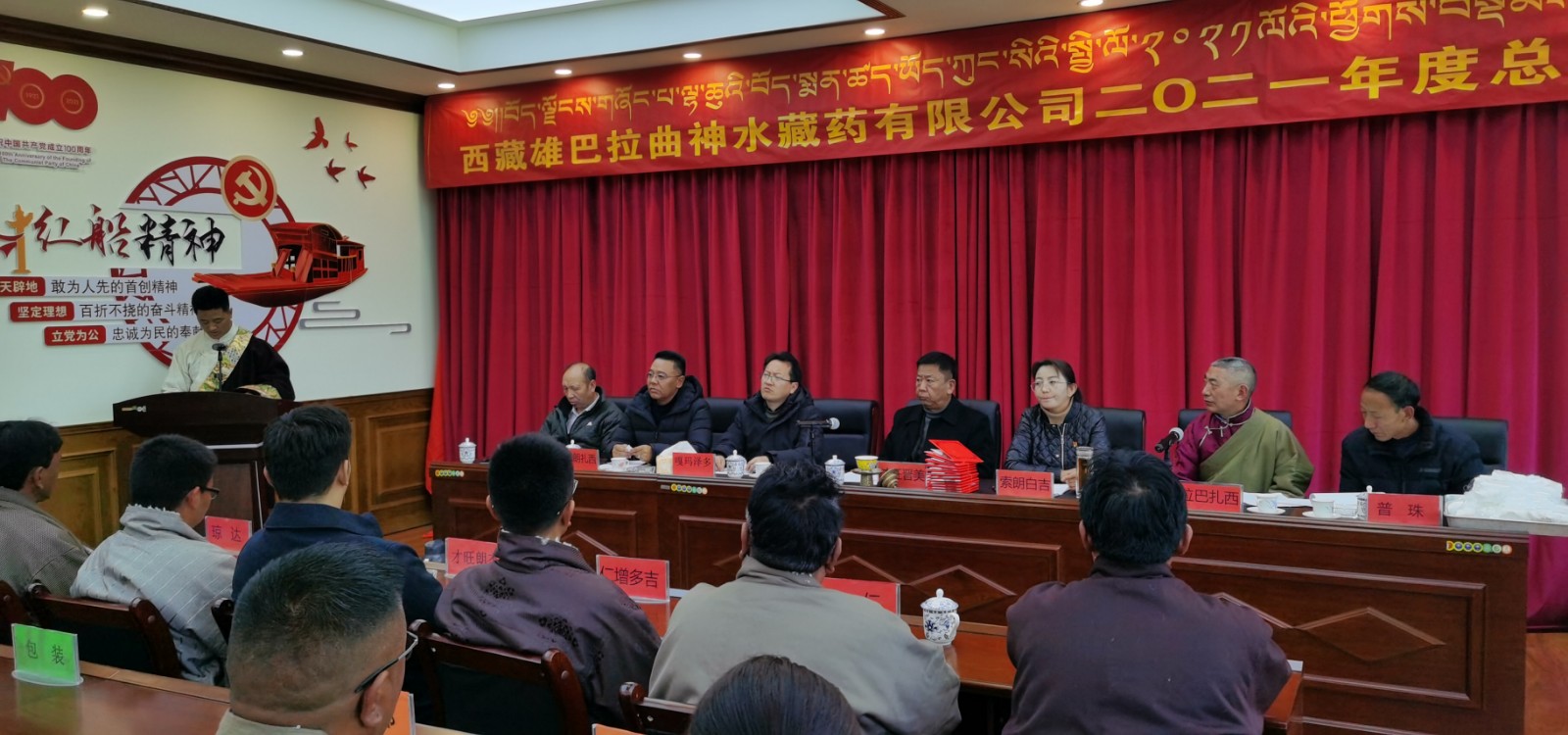 2022年1月25日上午10:30,在公司黨建會議室召開了“西藏雄巴拉曲神水藏藥有限公司2021年度工作總結暨先進表彰大會”,公司股東雙方及全體員工以熱情昂揚的精神參加了大會。本次大會共八項議程,在總結公司2021年工作情況的同時,剖析生產、經營管理和發展中存在的問題,研討謀劃公司下一步的經營思路和發展方向,部署公司2022年度工作計劃。